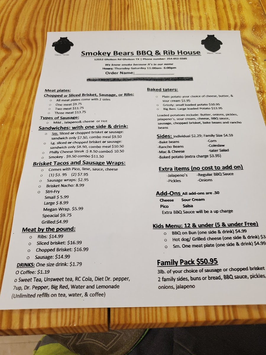 If you're craving mouthwatering, slow-cooked BBQ, look no further than Smokey Bears Bbq Menu. Nestled off I-35 in West, TX, this spot brings a deliciously smoky experience to the table with a variety of hearty BBQ dishes. Whether you're a fan of juicy pulled pork, tender brisket, or perfectly seasoned ribs, Smokey Bears BBQ offers something for every BBQ lover.